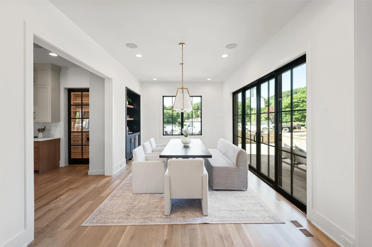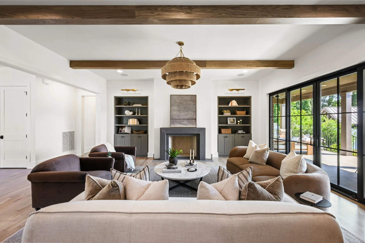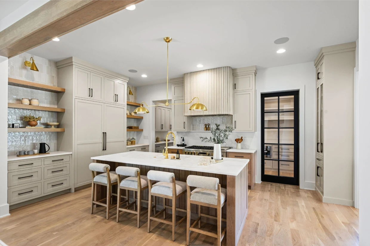 Nestled on 3 acres in the heart of Green Hills, this stunning new construction home is one of six timeless residences that seamlessly blend modern luxury with everyday practicality. Through the double front doors, you are welcomed with a spacious foyer, a formal home office, and dining room complete with a stylish wet bar, ice maker and beverage refrigerator. The heartbeat of this home is the open kitchen and living room. A chefs dream, with gorgeous inset cabinets, honed marble countertops, hidden appliances, a 48 inch Monogram gas range with leather handles, a walk in pantry, a fluted archistone hood, all over looking the living room complete with an archistone fireplace, fireballs and beautiful built ins.