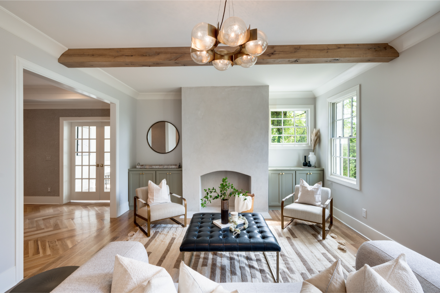This thoughtfully reimagined Historic Belmont Hillsboro home blends classic Cape Cod architecture with contemporary refinement. Inside, you’ll discover herringbone hardwood floors, vaulted ceilings with reclaimed wood beams, and expertly crafted millwork throughout. The kitchen anchors the home with custom natural wood cabinetry, a striking sage island, and professional-grade appliances. The primary bath becomes a personal retreat, featuring a freestanding soaking tub, dual vanities, and designer tile work. Outdoors, the private courtyard with large-format stone pavers and multiple French door connections creates an effortless indoor-outdoor lifestyle.